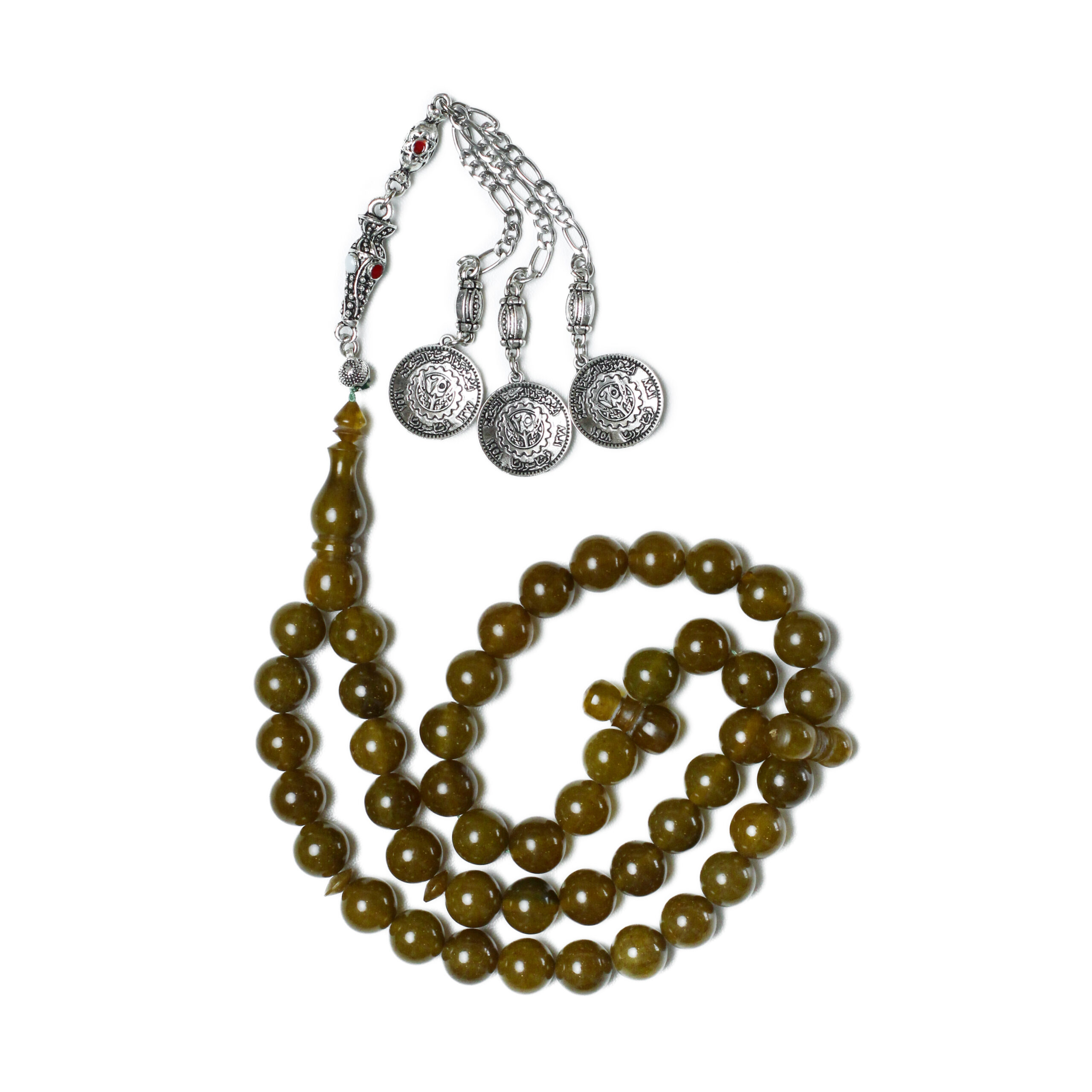 سبحة بلون حصرمي يشبه لونه قشر الليمون الأخضر ومائل الى الزيتي الشفاف